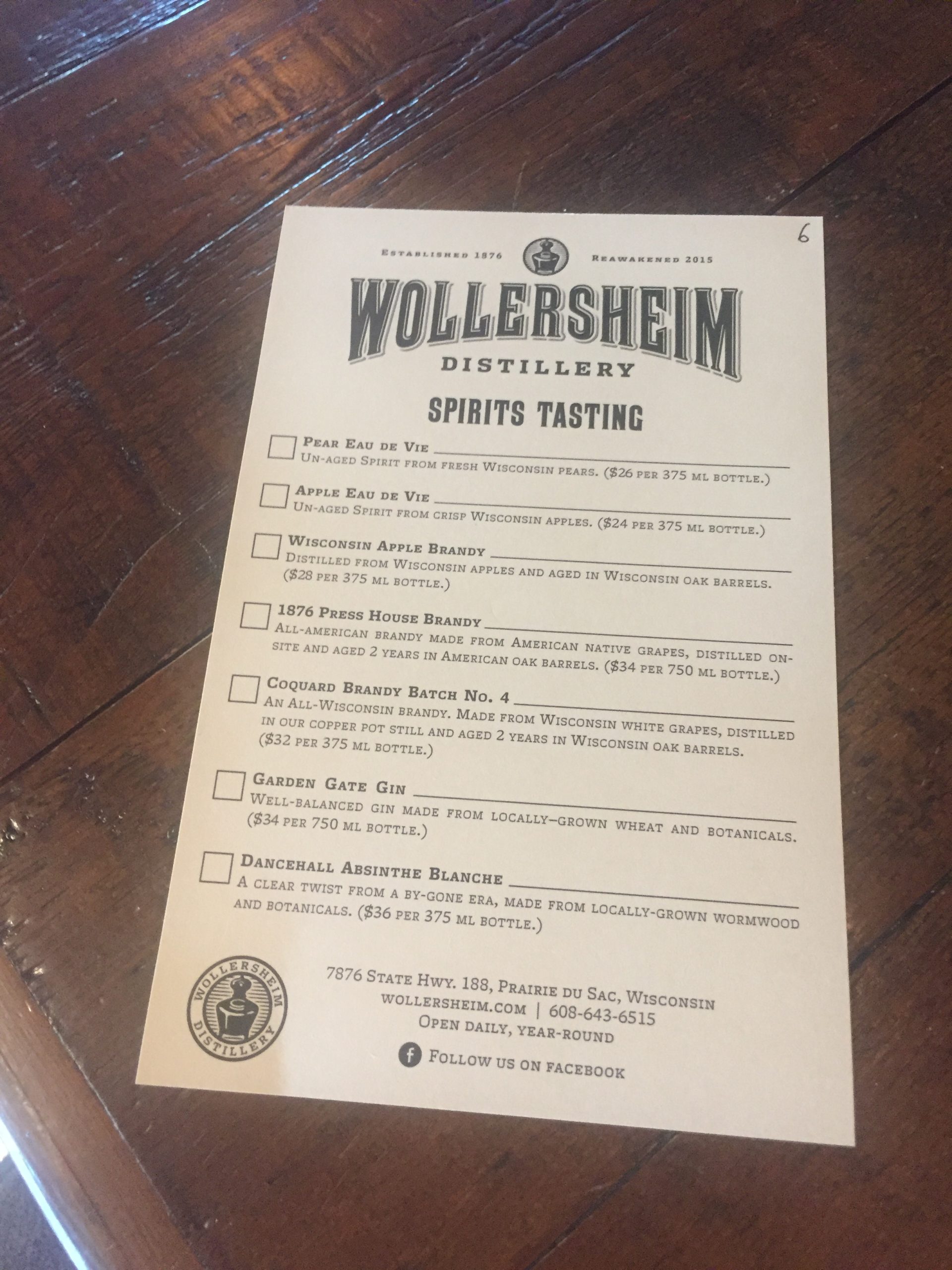 After a tasty cappuccino, I was back on the road. I changed course a couple of different times as a drove, taking suggestions from folks on Twitter. Eventually I wound up heading north of Madison to Sauk City, where I stopped at Wollersheim Winery and Distillery. I didn’t make it to the winery, but I was able to try a sample of six of their spirits.