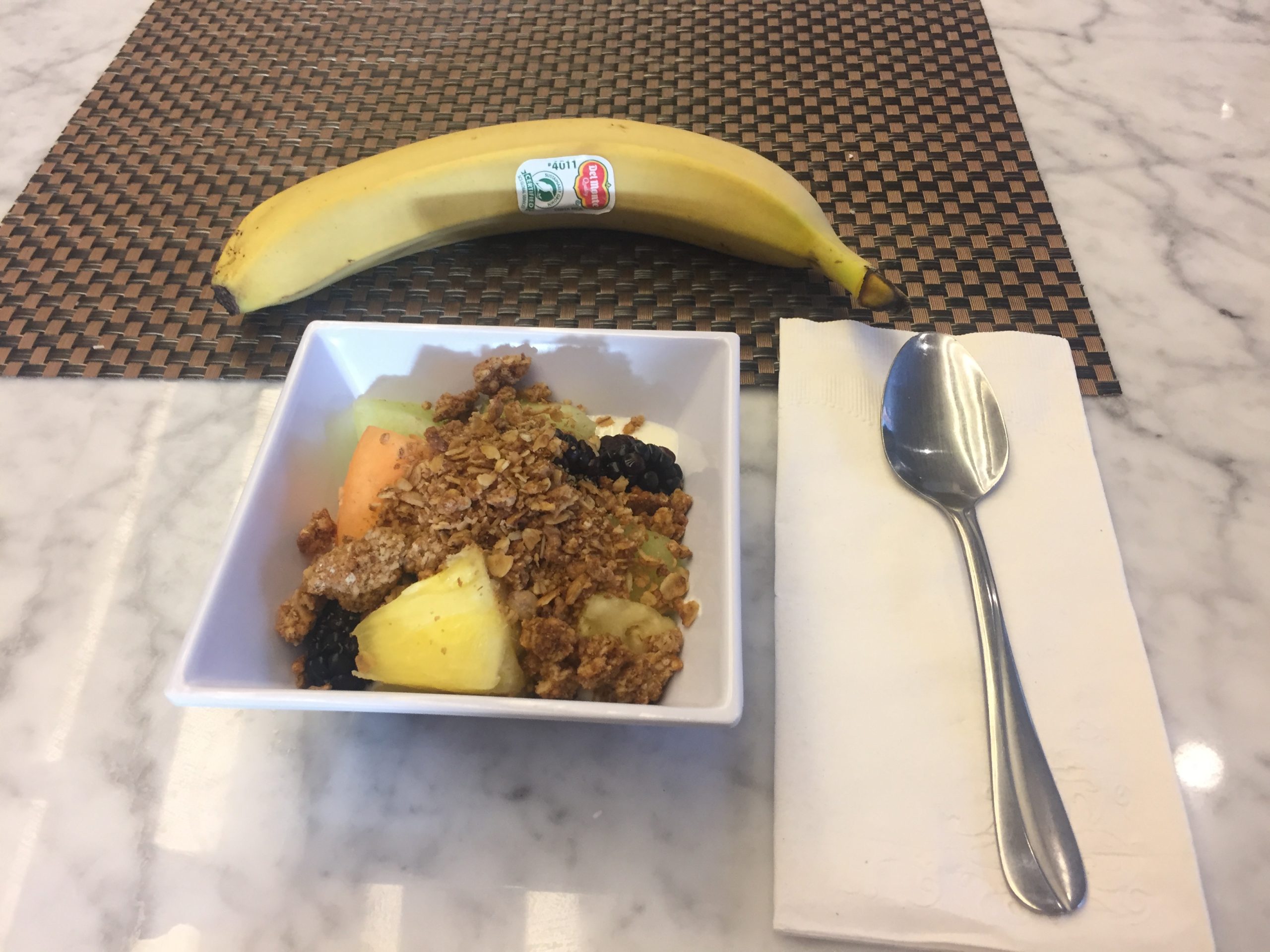 I woke up way too early this morning (after waking up for an hour between 3 and 4 AM), early enough that the free breakfast at the Hyatt Place wasn’t even ready to go yet. Fortunately they were kind enough to let me jump in for a light, simple breakfast.