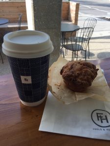 Back at Fools and Horses Coffee since 1. It’s really good, and 2. It’s a holiday and a many other places are closed. (That’s an apple rhubarb muffin)