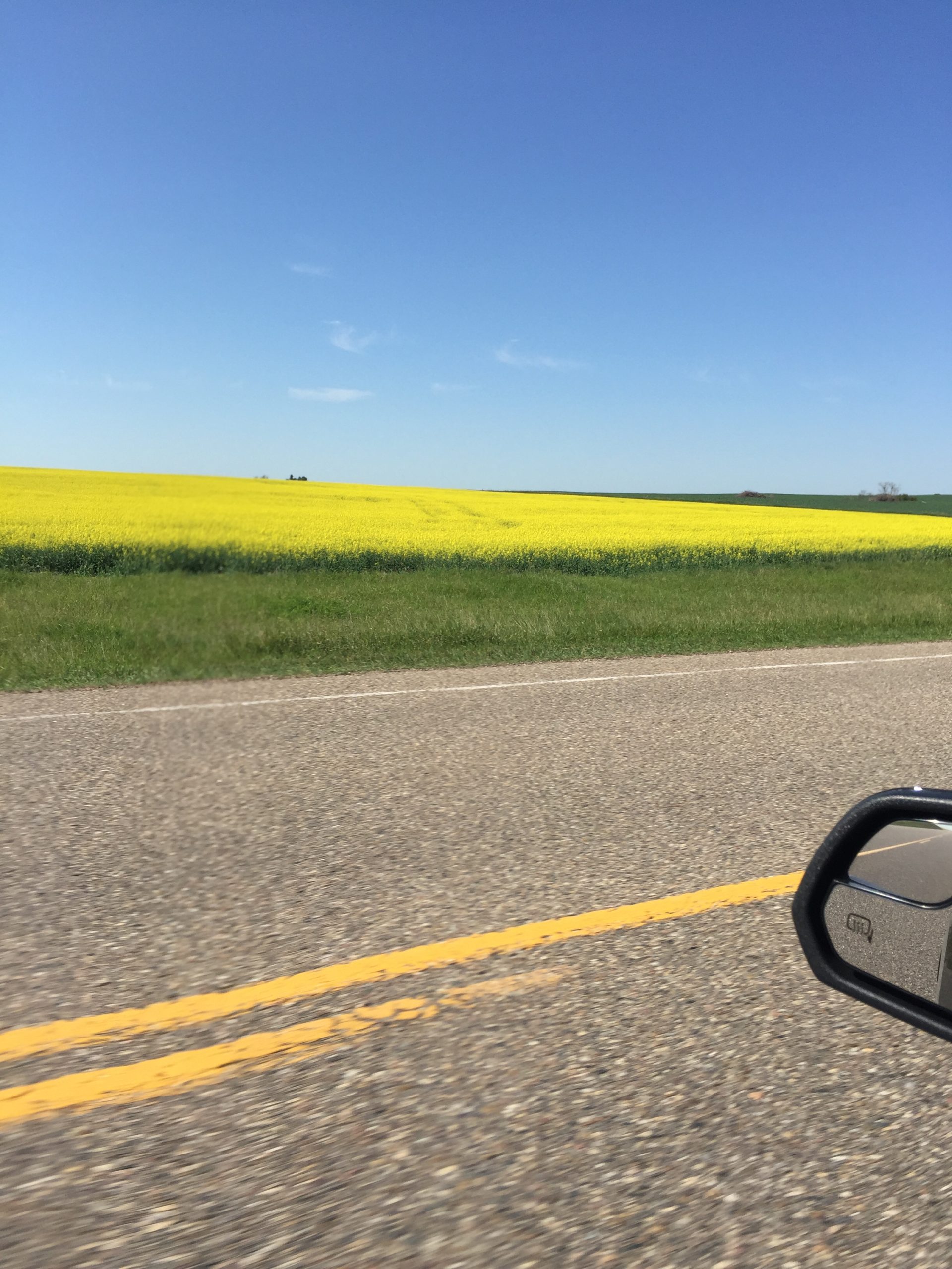 About halfway to Saskatoon, I turned due west and proceeded overland, through field after field of canola and rapeseed.