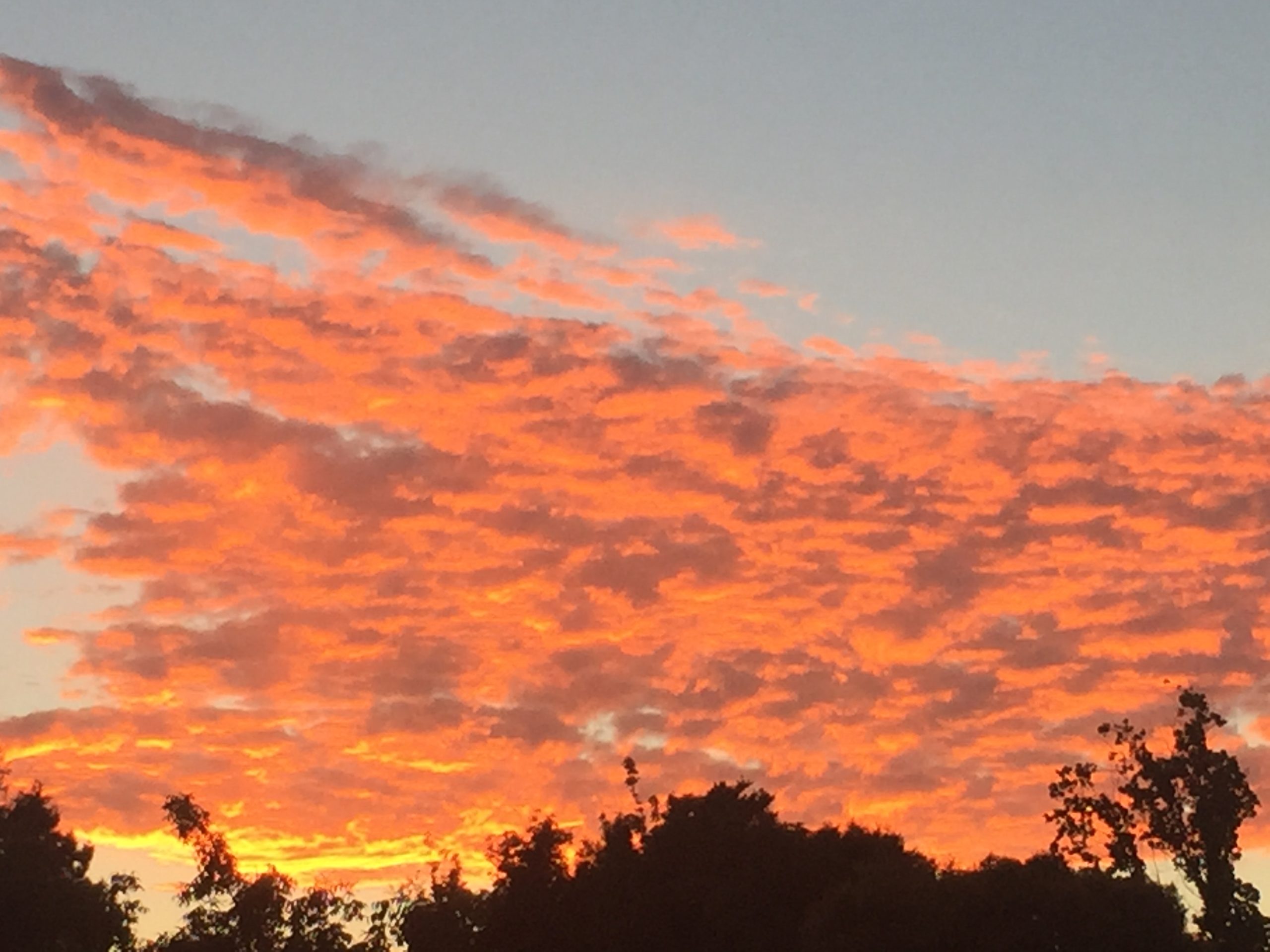 Purple clouds turn scarlet in the setting sun