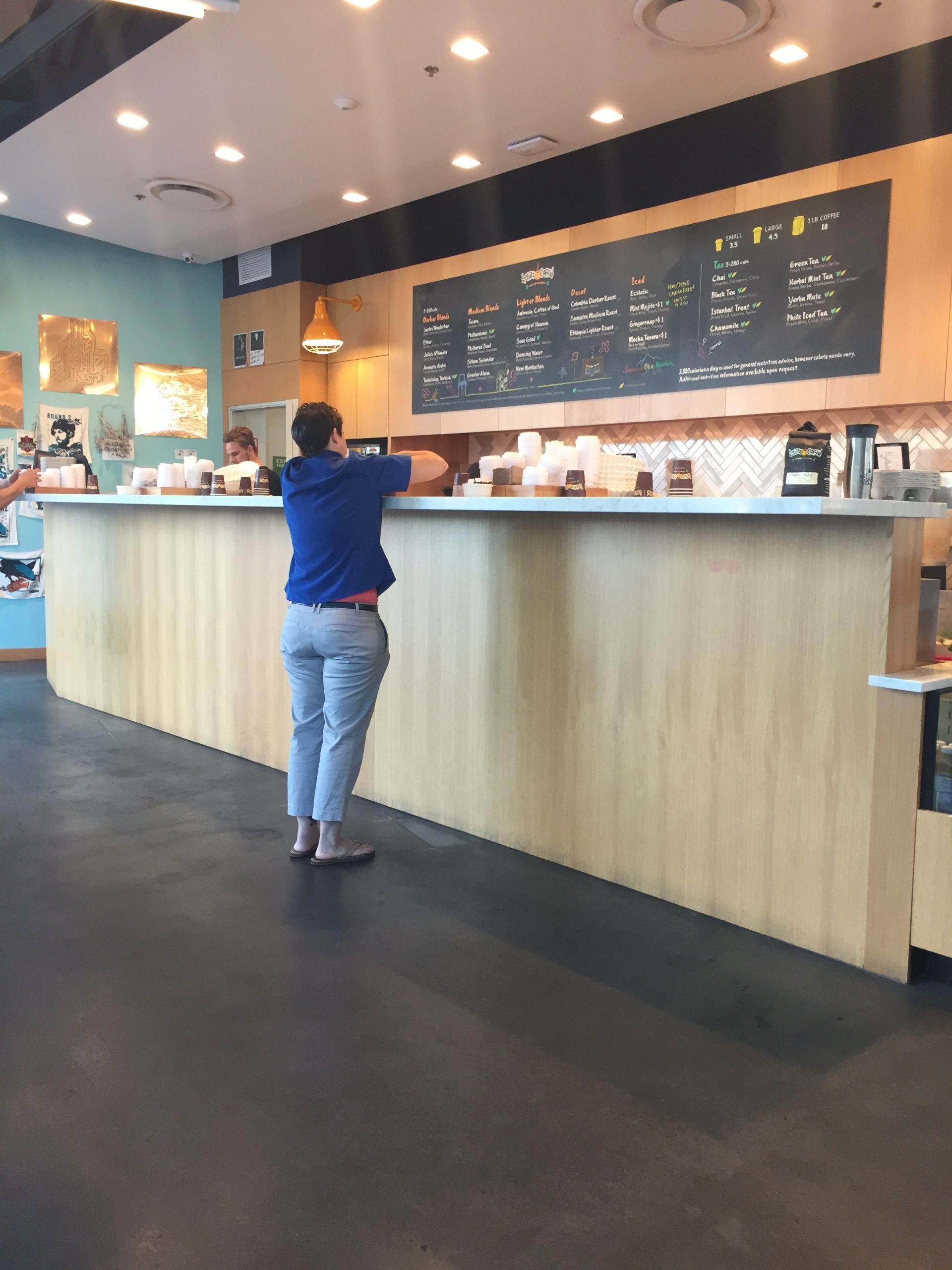 It was another early start today – up at 5:15 AM. After packing up, rearranging my luggage, cleaning the car, and checking out, I was able to walk to the coffee shop just across the street right as they opened at 6:30 AM.