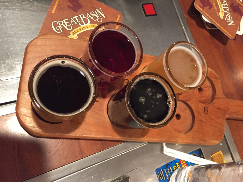 I checked into my hotel in Reno (a Hyatt Place, the first of a long line of Hyatts this week – all free!). On my friend Rifka’s advice, I sought out one of the local breweries before dinner to check out their offerings. They were all quite good!