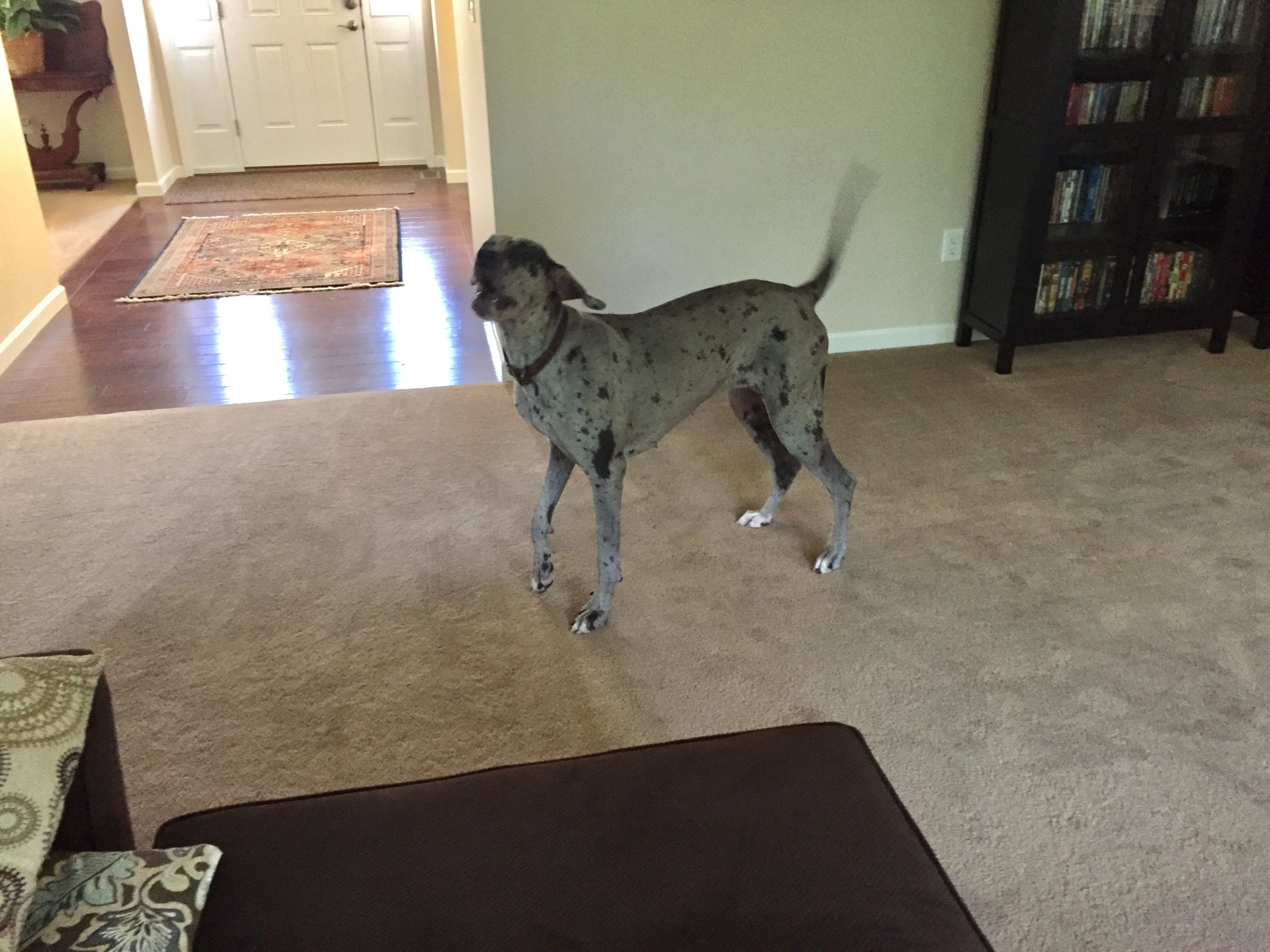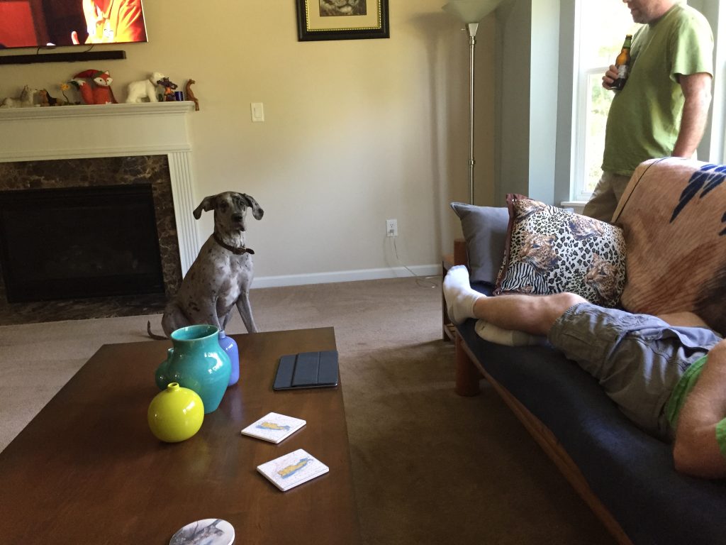 I met up with Rama and K at Sugarfire Smoke House in St. Charles, Missouri for lunch. It’s a fun, quirky place with great BBQ sauces. After that we went back to their place and…didn’t do much. Rama and I sat around and talked convention stuff and watched some TV. It was lovely, and considering that it was 105 F outside it was a great alternative to venturing out. A big plus was that I got to pet Zoe, their 90-pound Great Dane puppy!