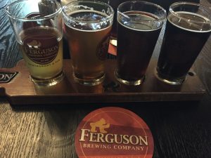 For dinner we went to Ferguson Brewing Company where I enjoyed my last beer flight of the trip, which had some unusually generous pours!