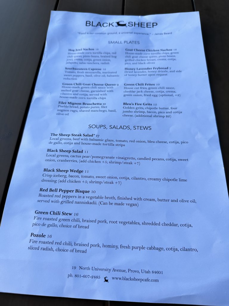 From there I braved the somewhat crazy traffic through Salt Lake City down to Provo, Utah, my destination for the night. After getting settled in at the Hyatt Place Provo Charlie and I went for a stroll through the downtown area. Sadly there are no breweries in Provo (because Utah), but I was able to get an outdoor table at Black Sheep, a Native American restaurant. I got the hog jowl nachos, which were delicious. The table was unfortunately right on a very busy city street, and Charlie was NOT a fan of all of the traffic noise.