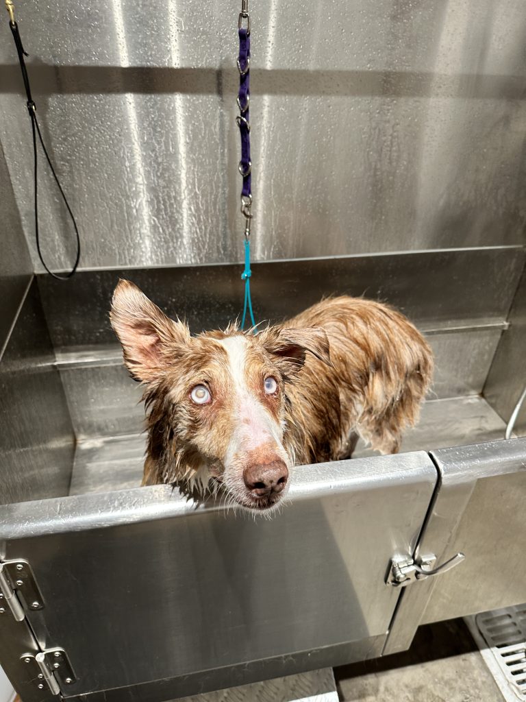 As has become tradition (twice is a tradition, right?) it was bathtime for Charlie. By the time we reach Denver on these road trips, usually about three weeks in, he gets to be a bit stinky from riding in the car all that time. I took him to Luke & Company just south of downtown Denver and gave him a good scrubdown. As always he did not enjoy it (with that look of, “Father why must you do this to me?”) but looked and smelled so much better once we were done!