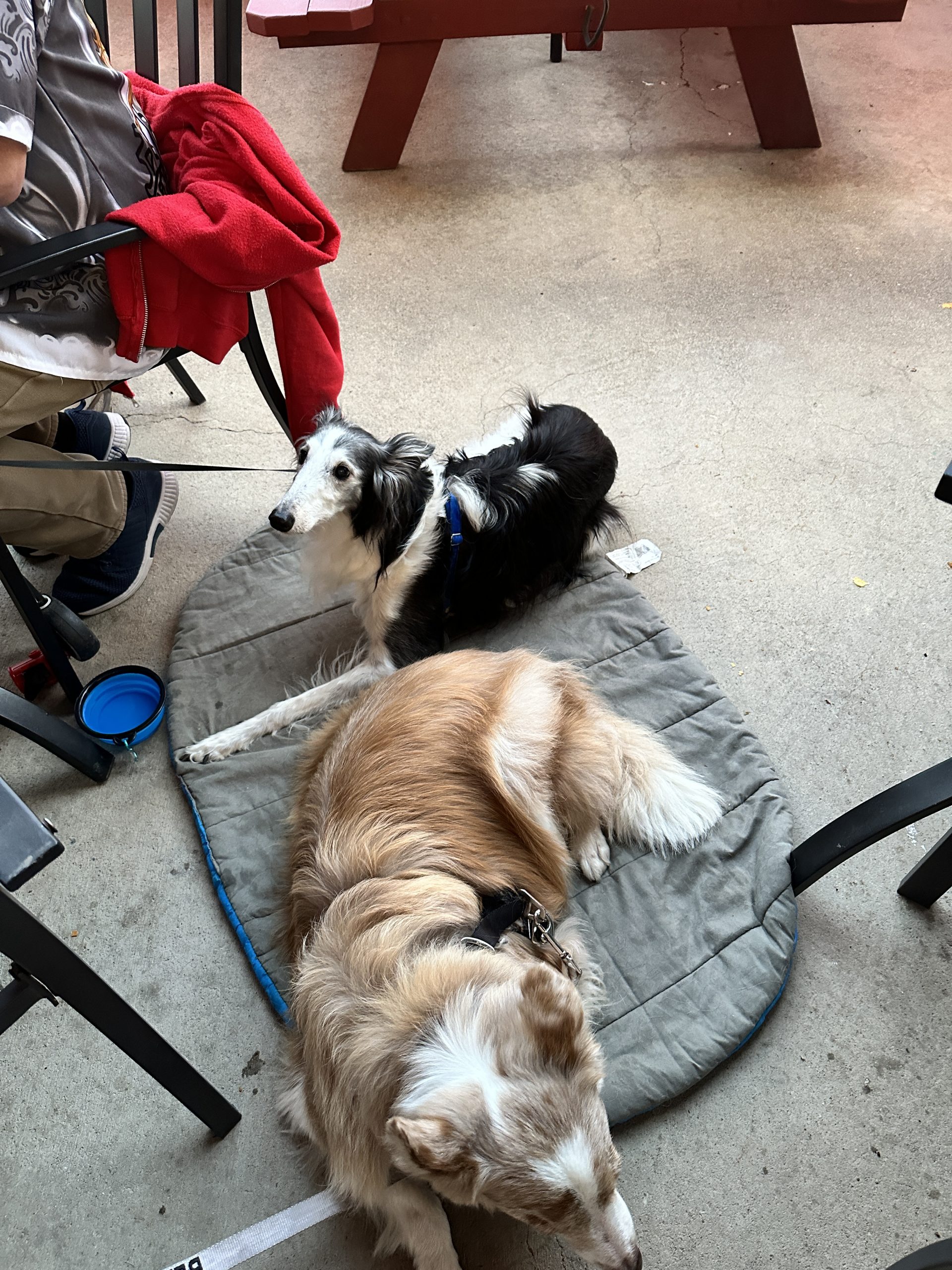 For dinner, I met up with Tango and Rooth in Aurora. Rooth graciously hosted us at his house to hang out for a bit, then we adjourned to Launch Pad Brewing. I got to meet Rooth’s Cricket, a Silken Windsprite (longhaired whippet), a very sweet girl.